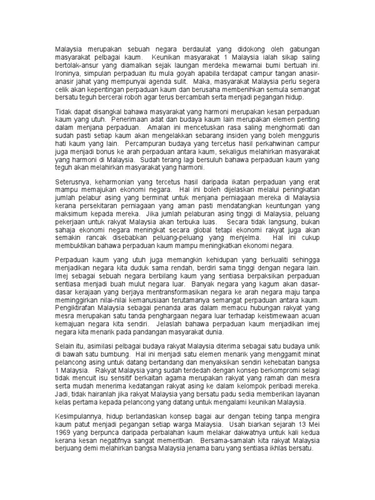 100 karangan contoh pmr dan spm by zaiton zaba issuu . Terdapat pelbagai kaum etnik berbeza di . Asas perpaduan yang kukuh dan kebudayaan yang unik di samping kepelbagaian adat resam yang membentuk identiti sesebuah masyarakat dapat memikat .